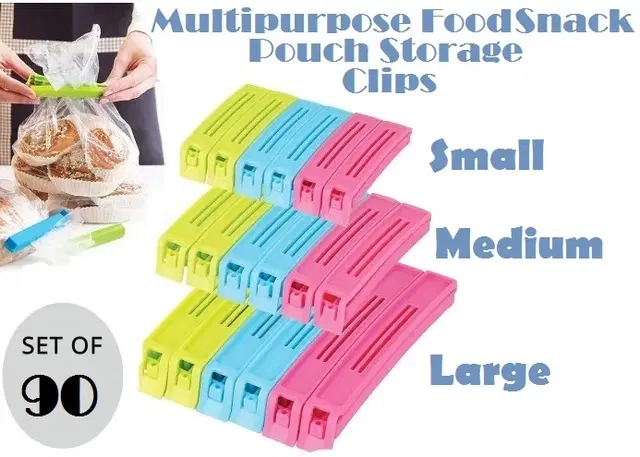 Plastic Food Bags Airtight Vaccum Sealer Clips, Multicolor, Set of 90 - Buy Online at CityMall