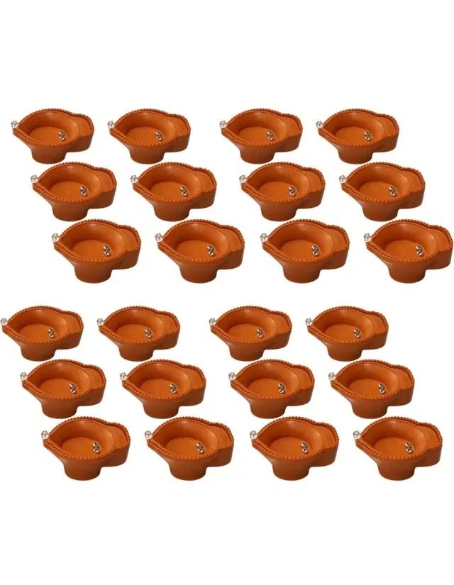 Package Content :- 24 Water sensor led diyas. Just like oil and ghee mitti Diya they are water diyas. As you drop water they illuminate a warm orange light similar to oil Diya creating a traditional ambiance in the atmosphere.