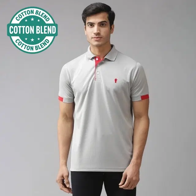 Your go-to T-shirt for any day. This stylish grey & red T-shirt is crafted from premium cotton blend, combining casual charm with comfort. It is featuring a trendy solid pattern, styled with half sleeves sleeves, tailored in a regular fit fit. Pair it with jeans or shorts for a cool and relaxed everyday outfit.
