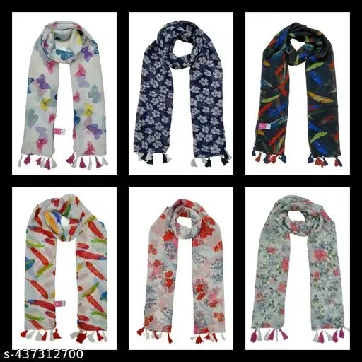 Poly Chiffon Printed Scarves for Women, Pack of 6 (Multicolor, 1.75 m)