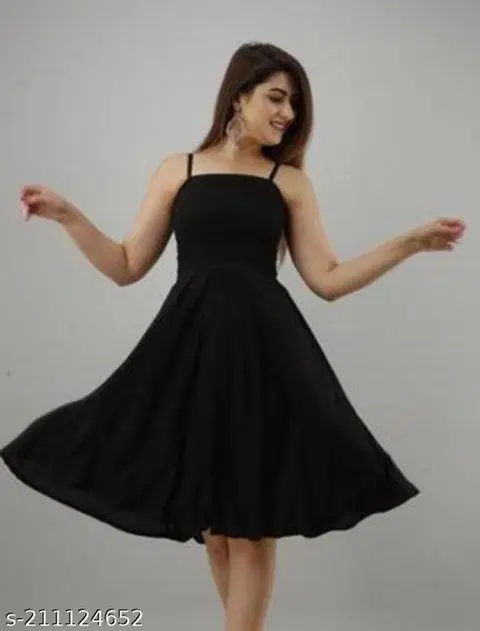 Poly Crepe Solid Dress for Women (Black, M) @ ₹239 - Buy Online at CityMall