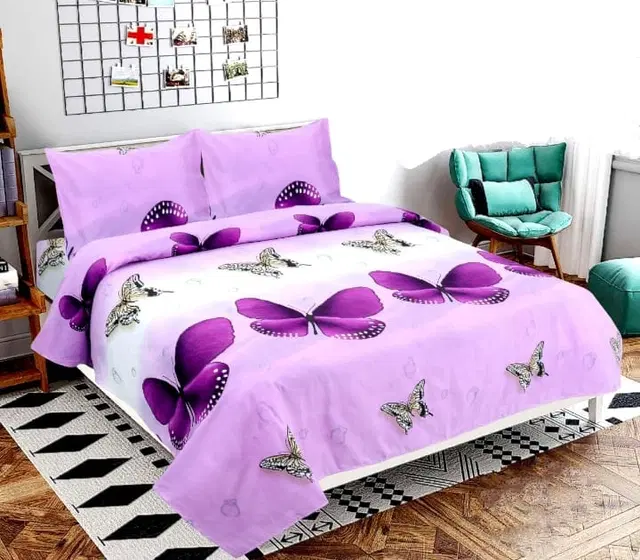 Polycotton Double Bedsheet with 2 Pillow Cover