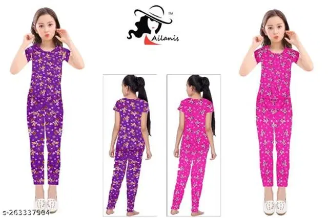Polycotton Nightsuit for Girls, Pack of 2 (Purple & Pink, 3-4 Years) @ ₹309 - Buy Online at CityMall