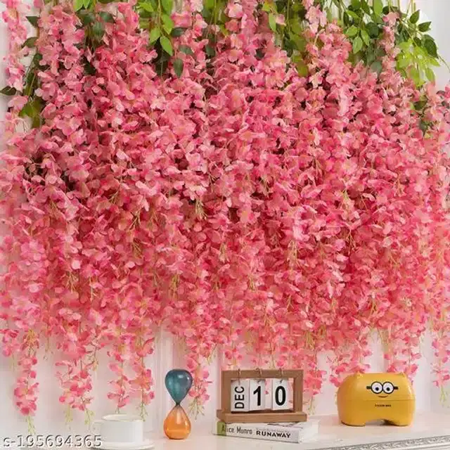 Name: Well Art Gallery Artificial Silk Wisteria(pack of 4) (4.3 feet )Hanging Flowers Strings Garlands for Home Decoration Wedding Party Garden Outdoor Ceremony Events Backdrop Floral Decoration(pink)
