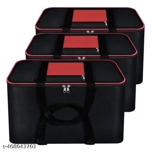 Name: Underbed Storage Bag Moisture Proof Cloth Organiser Nylon Big Underbed Storage Bag with Zippered Closure and Handle(Black Red, 54x46x28cm) (Pack of 3)