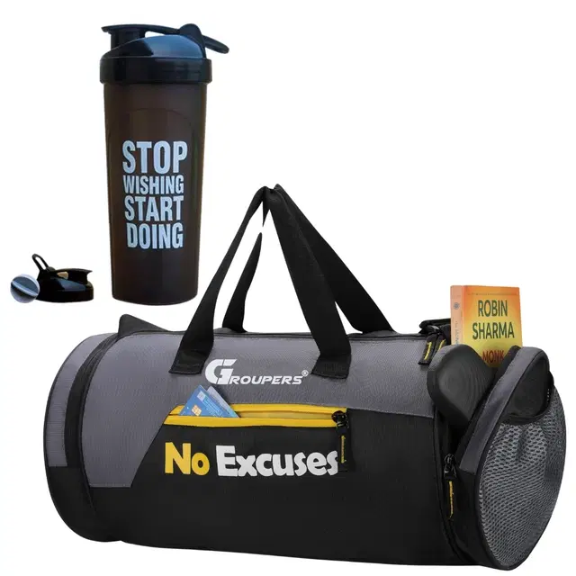Polyester Duffle Gym Bag with Sipper Bottle, 700 ml for Men & Women, Black & Grey, Set of 2 @ ₹598 - Buy Online at CityMall