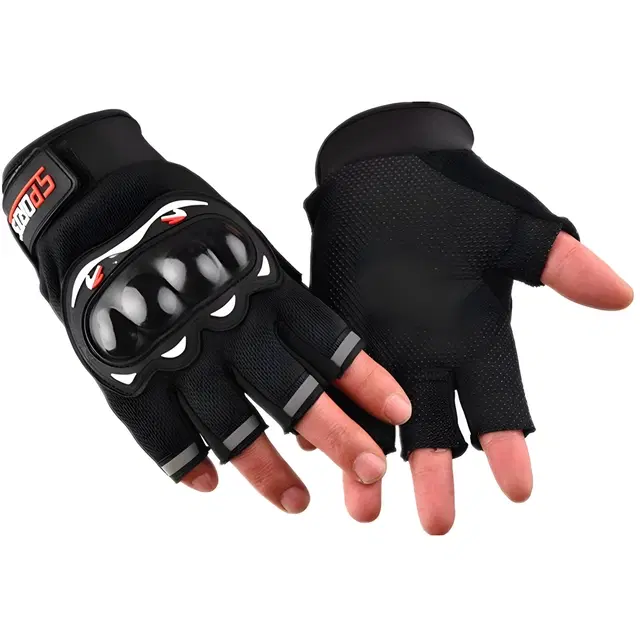 Polyester Half Finger Riding Gloves for Men, Set of 1 (Black)