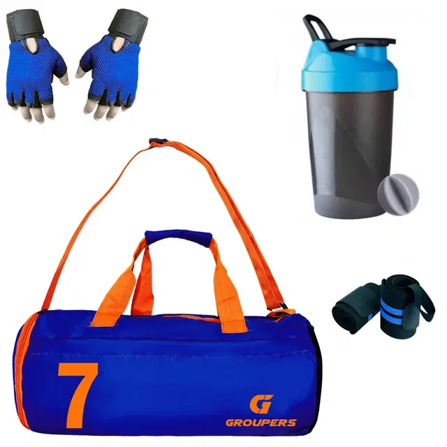 Premium Durable Material - Travel Duffel Bag Is Made of High Quality,Durable Material.Separate Shoes Compartment - Built-In Extra Shoes Compartment With Exterior Zippers To Keep Your Shoes And Clean Sport Gears Separate.A Unique Combination of All Exercise Accessories All Product Made With High Quality Material (Color May Vary - Subject To Availability)Abundance of Storage - Large Capacity,Meet Your Requirement For Sure And Keep Your Stuff In Order. What An Amazing Design For Sport Bag! Duffle Polyester Bag With Shaker Bottle-400Ml, Wrist Band & Gloves/Gym Bags/Fitness Bag/Carry Bags(Blue 07)