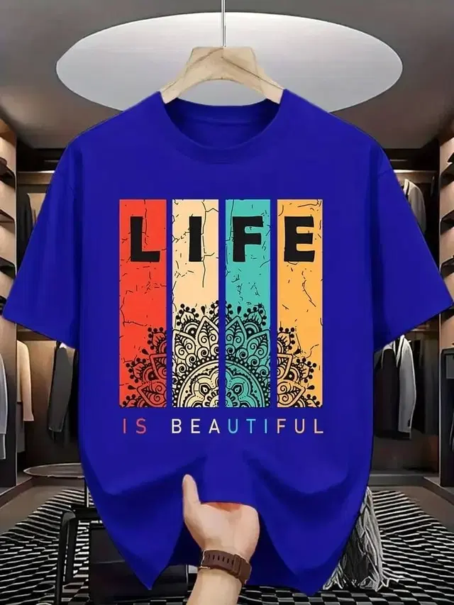 Polyester Printed Half Sleeves T-Shirts For Men, Light Blue (M) - Buy Online at CityMall