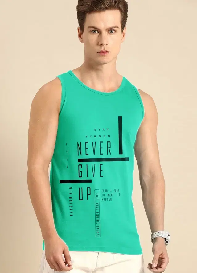 Polyester Printed Vest for Men (Green, L)
