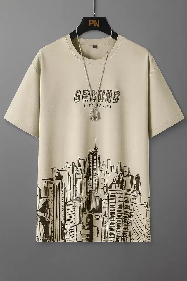 Round Neck Printed T-Shirt for Men, Beige (XL) - Buy Online at CityMall