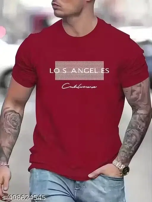 Elevate your casual style with this Maroon Printed T-shirt for Men. Crafted from soft, breathable fabric, it offers all-day comfort and ease of movement. The bold print adds a trendy touch, making it a perfect pick for casual outings or weekend wear. Designed with a classic crew neck and short sleeves, it pairs effortlessly with jeans, joggers, or shorts for a laid-back yet stylish look.