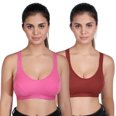 Proleaf Spun Interlock Non Padded Bra for women, Rani Pink & Brown, Pack of 2 (30 A) @ ₹209 - Buy Online at CityMall