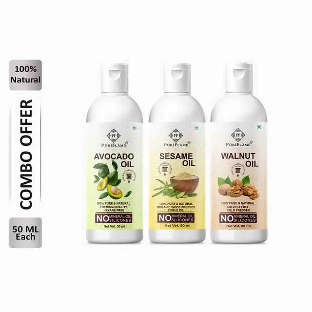 Puriflame Pure Avocado Oil, 50 ml, Sesame Oil, 50 ml & Walnut Oil, 50 ml Combo for Rapid Hair Growth, Pack Of 3, B-9188 @ ₹276 - Buy Online at CityMall