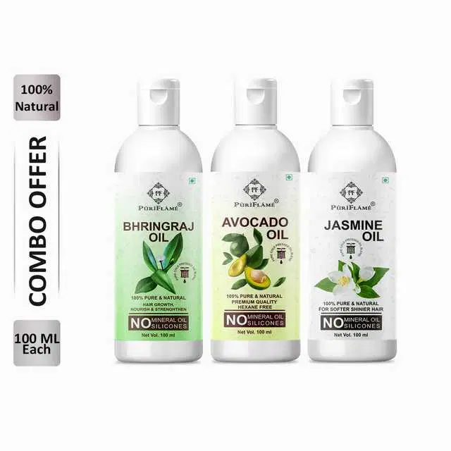 PuriFlame Pure Bhringraj Oil, 100 ml & Avocado Oil, 100 ml & Jasmine Oil, 100 ml Combo For Rapid Hair Growth, Pack Of 3, B-2654 @ ₹390 - Buy Online at CityMall