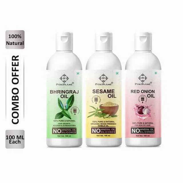 PuriFlame Pure Bhringraj Oil, 100 ml & Sesame Oil, 100 ml & Red Onion Oil, 100 ml Combo For Rapid Hair Growth, Pack Of 3, B-2913 @ ₹362 - Buy Online at CityMall