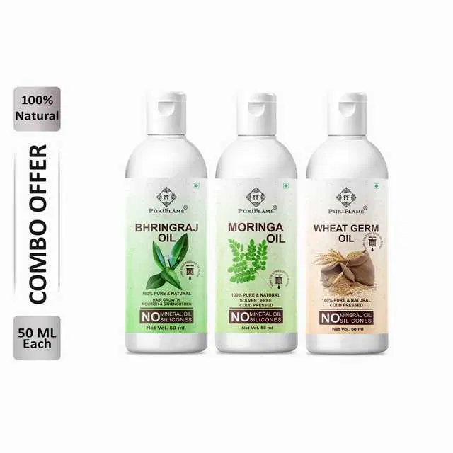 Puriflame Pure Bhringraj Oil, 50 ml, Moringa Oil, 50 ml & Wheat Germ Oil, 50 ml Combo for Rapid Hair Growth, Pack Of 3, B-9393 @ ₹314 - Buy Online at CityMall