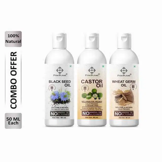 Puriflame Pure Black Seed Oil, 50 ml, Castor Oil, 50 ml & Wheat Germ Oil, 50 ml Combo for Rapid Hair Growth, Pack Of 3, B-9597 @ ₹305 - Buy Online at CityMall