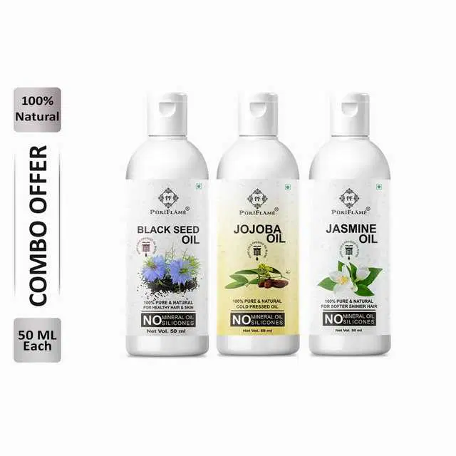 Puriflame Pure Black Seed Oil, 50 ml, Jojoba Oil, 50 ml & Jasmine Oil, 50 ml Combo for Rapid Hair Growth, Pack Of 3, B-9673 @ ₹305 - Buy Online at CityMall