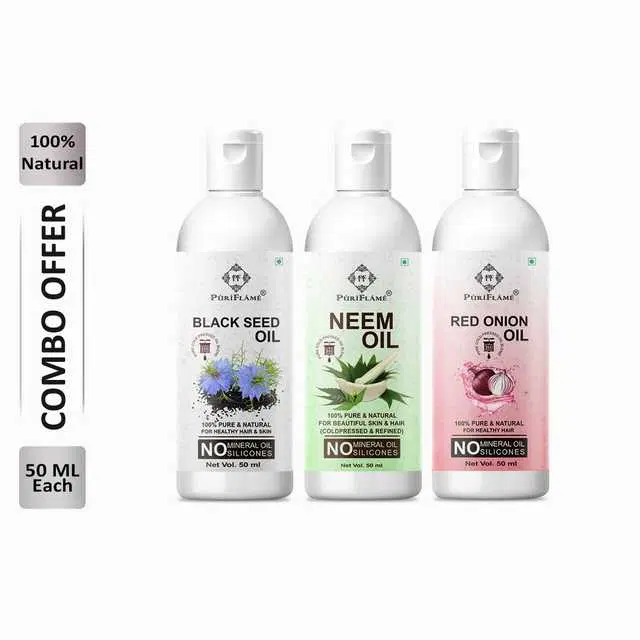 Puriflame Pure Black Seed Oil, 50 ml, Neem Oil, 50 ml & Red Onion Oil, 50 ml Combo for Rapid Hair Growth, Pack Of 3, B-9712 @ ₹295 - Buy Online at CityMall