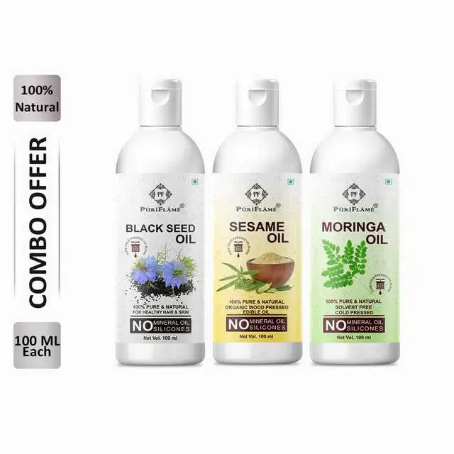 PuriFlame Pure Blackseed Oil, 100 ml & Sesame Oil, 100 ml & Moringa Oil, 100 ml Combo For Rapid Hair Growth, Pack Of 3, B-3251 @ ₹381 - Buy Online at CityMall