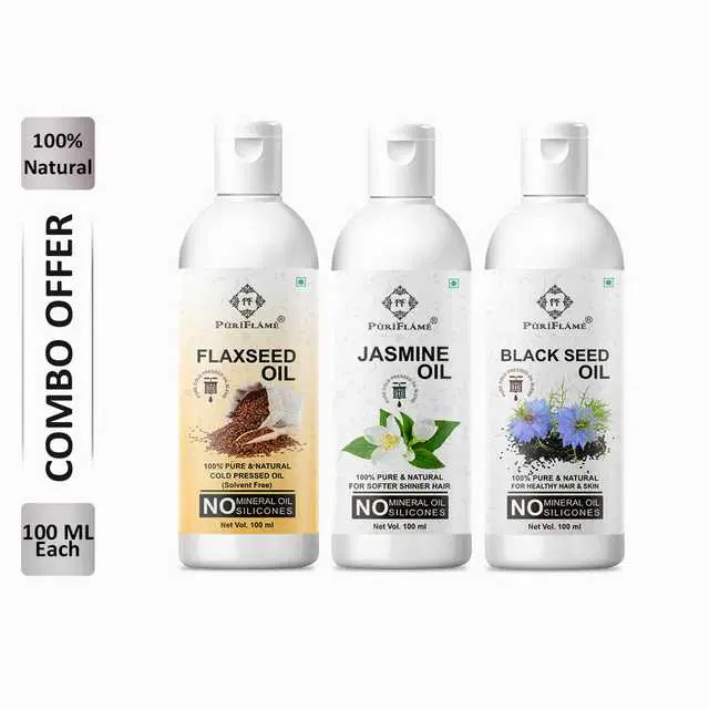 PuriFlame Pure Flaxseed Oil, 100 ml & Jasmine Oil, 100 ml & Blackseed Oil, 100 ml Combo For Rapid Hair Growth, Pack Of 3, B-4127 @ ₹362 - Buy Online at CityMall