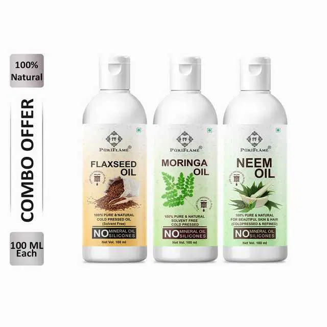 PuriFlame Pure Flaxseed Oil, 100 ml & Moringa Oil, 100 ml & Neem Oil, 100 ml Combo For Rapid Hair Growth, Pack Of 3, B-4169 @ ₹381 - Buy Online at CityMall