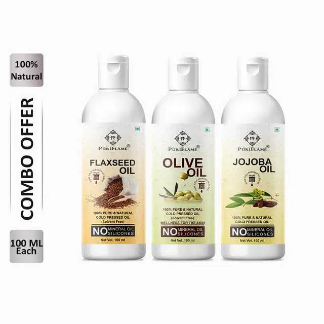 PuriFlame Pure Flaxseed Oil, 100 ml & Olive Oil, 100 ml & Jojoba Oil, 100 ml Combo For Rapid Hair Growth, Pack Of 3, B-4204 @ ₹371 - Buy Online at CityMall