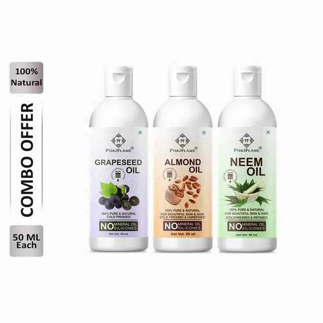 Puriflame Pure Grapeseed Oil, 50 ml, Almond Oil, 50 ml & Neem Oil, 50 ml Combo for Rapid Hair Growth, Pack Of 3, B-10763 @ ₹305 - Buy Online at CityMall