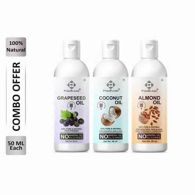 Puriflame Pure Grapeseed Oil, 50 ml, Coconut Oil, 50 ml & Almond Oil, 50 ml Combo for Rapid Hair Growth, Pack Of 3, B-10839 @ ₹286 - Buy Online at CityMall
