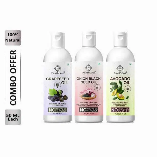 Puriflame Pure Grapeseed Oil, 50 ml, Onion Black Seed Oil, 50 ml & Avocado Oil, 50 ml Combo for Rapid Hair Growth, Pack Of 3, B-10959 @ ₹295 - Buy Online at CityMall