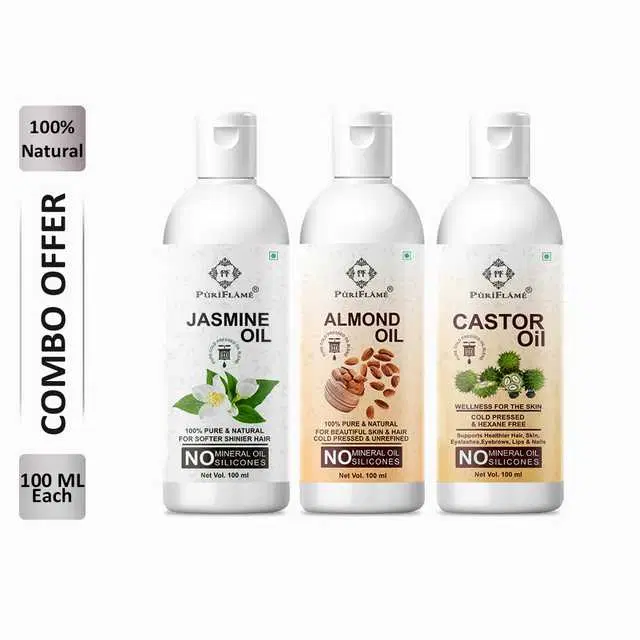 PuriFlame Pure Jasmine Oil, 100 ml & Almond Oil, 100 ml & Castor Oil, 100 ml Combo For Rapid Hair Growth, Pack Of 3, B-4667 @ ₹390 - Buy Online at CityMall