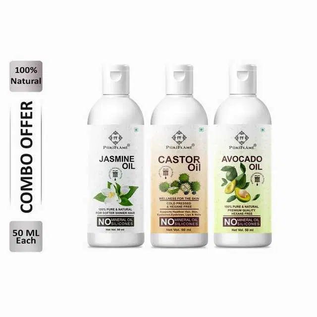 Puriflame Pure Jasmine Oil, 50 ml, Castor Oil, 50 ml & Avocado Oil, 50 ml Combo for Rapid Hair Growth, Pack Of 3, B-11129 @ ₹276 - Buy Online at CityMall