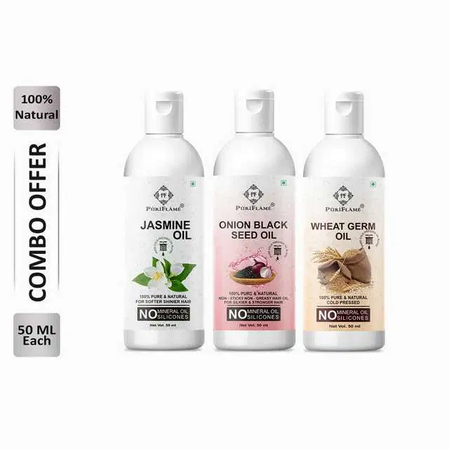 Puriflame Pure Jasmine Oil, 50 ml, Onion Black Seed Oil, 50 ml & Wheat Germ Oil, 50 ml Combo for Rapid Hair Growth, Pack Of 3, B-11280 @ ₹305 - Buy Online at CityMall