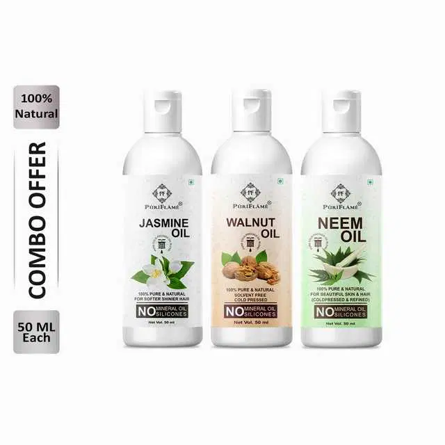 Puriflame Pure Jasmine Oil, 50 ml, Walnut Oil, 50 ml & Neem Oil, 50 ml Combo for Rapid Hair Growth, Pack Of 3, B-11342 @ ₹295 - Buy Online at CityMall