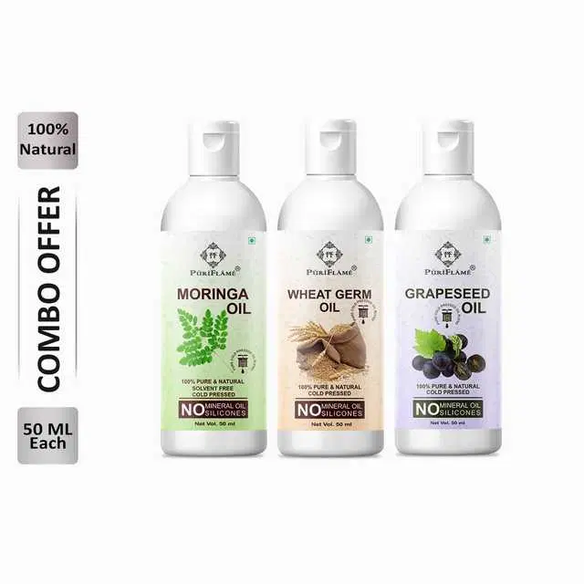 Puriflame Pure Moringa Oil, 50 ml, Wheat Germ Oil, 50 ml & Grapeseed Oil, 50 ml Combo for Rapid Hair Growth, Pack Of 3, B-11968 @ ₹305 - Buy Online at CityMall
