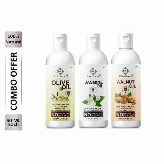 Puriflame Pure Olive Oil, 50 ml, Jasmine Oil, 50 ml & Walnut Oil, 50 ml Combo for Rapid Hair Growth, Pack Of 3, B-12435 @ ₹295 - Buy Online at CityMall