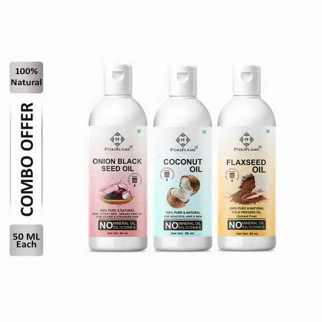 Puriflame Pure Onion Black Seed Oil, 50 ml, Coconut Oil, 50 ml & Flaxseed Oil, 50 ml Combo for Rapid Hair Growth, Pack Of 3, B-12680 @ ₹238 - Buy Online at CityMall