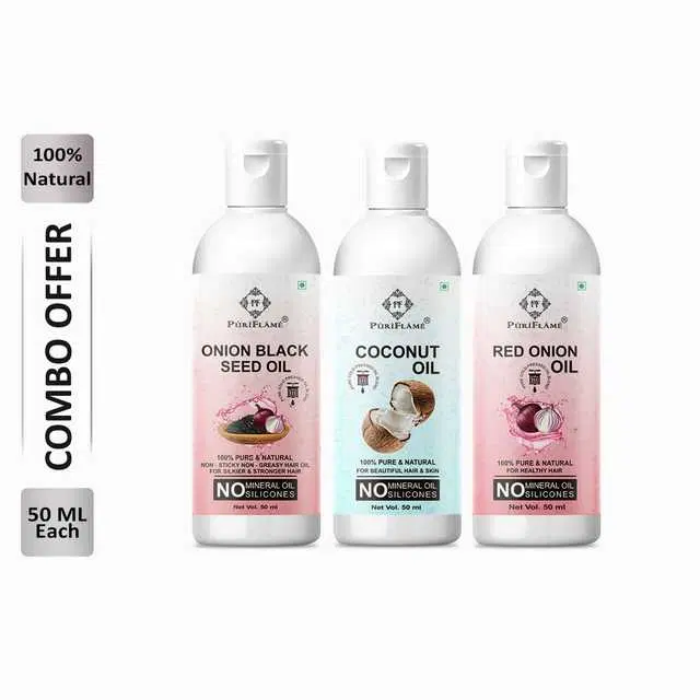 Puriflame Pure Onion Black Seed Oil, 50 ml, Coconut Oil, 50 ml & Red Onion Oil, 50 ml Combo for Rapid Hair Growth, Pack Of 3, B-12687 @ ₹276 - Buy Online at CityMall