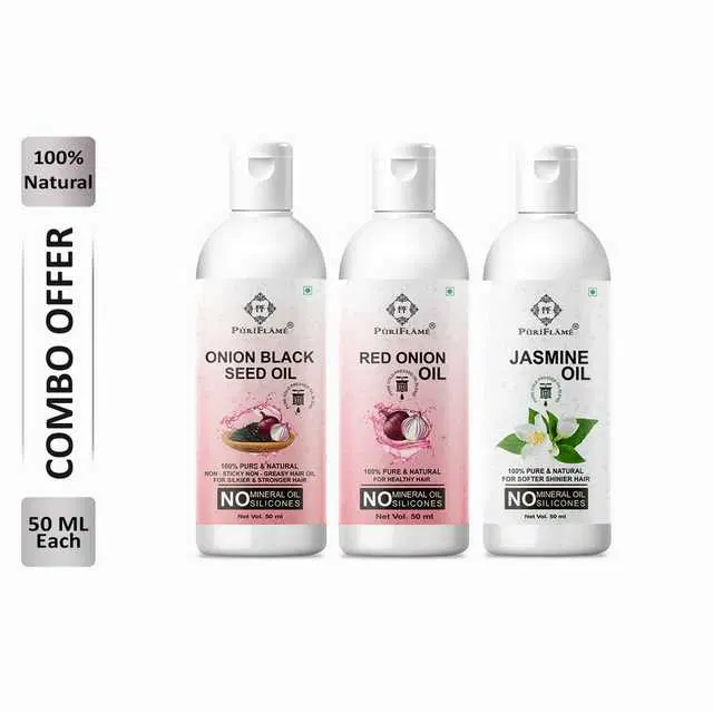 Puriflame Pure Onion Black Seed Oil, 50 ml, Red Onion Oil, 50 ml & Jasmine Oil, 50 ml Combo for Rapid Hair Growth, Pack of 3, B-12819 @ ₹295 - Buy Online at CityMall