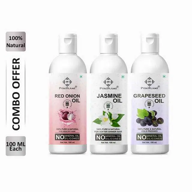PuriFlame Pure Red Onion Oil, 100 ml & Jasmine Oil, 100 ml & Grapeseed Oil, 100 ml Combo For Rapid Hair Growth, Pack Of 3, B-6884 @ ₹381 - Buy Online at CityMall
