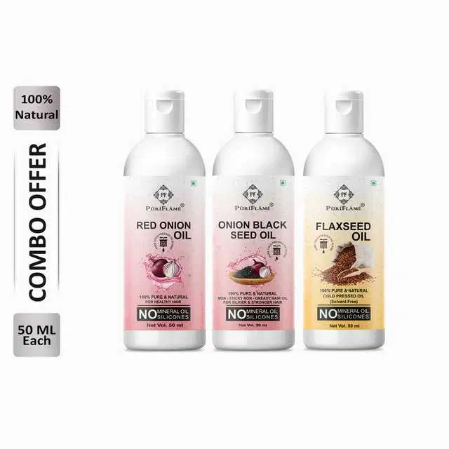 Puriflame Pure Red Onion Oil, 50 ml, Onion Black Seed Oil, 50 ml & Flaxseed Oil, 50 ml Combo for Rapid Hair Growth, Pack of 3, B-13123 @ ₹295 - Buy Online at CityMall