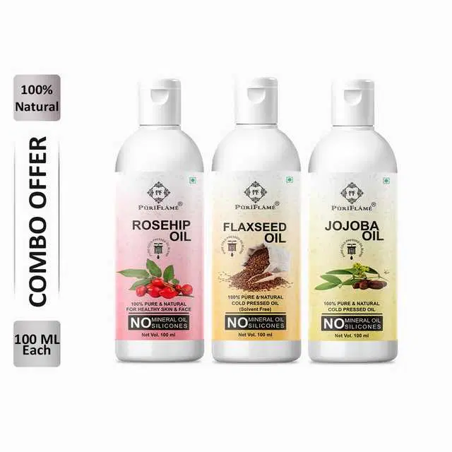 PuriFlame Pure Rosehip Oil, 100 ml & Flaxseed Oil, 100 ml & Jojoba Oil, 100 ml Combo For Rapid Hair Growth, Pack Of 3, B-7191 @ ₹381 - Buy Online at CityMall