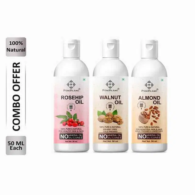 Puriflame Pure Rosehip Oil, 50 ml, Walnut Oil, 50 ml & Almond Oil, 50 ml Combo for Rapid Hair Growth, Pack Of 3, B-13474 @ ₹305 - Buy Online at CityMall