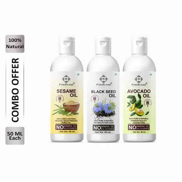 Puriflame Pure Sesame Oil, 50 ml, Black Seed Oil, 50 ml & Avocado Oil, 50 ml Combo for Rapid Hair Growth, Pack Of 3, B-13560 @ ₹267 - Buy Online at CityMall