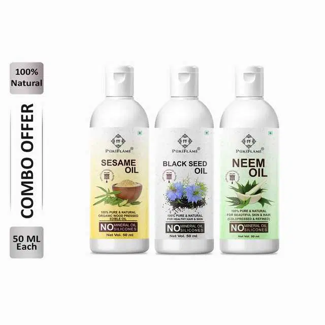 Puriflame Pure Sesame Oil, 50 ml, Black Seed Oil, 50 ml & Neem Oil, 50 ml Combo for Rapid Hair Growth, Pack Of 3, B-13569 @ ₹267 - Buy Online at CityMall