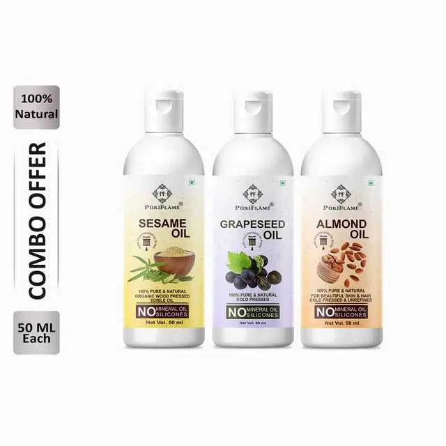 Puriflame Pure Sesame Oil, 50 ml, Grapeseed Oil, 50 ml & Almond Oil, 50 ml Combo for Rapid Hair Growth, Pack of 3, B-13627 @ ₹267 - Buy Online at CityMall