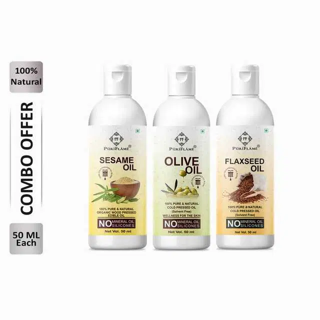 Puriflame Pure Sesame Oil, 50 ml, Olive Oil, 50 ml & Flaxseed Oil, 50 ml Combo for Rapid Hair Growth, Pack Of 3, B-13718 @ ₹257 - Buy Online at CityMall