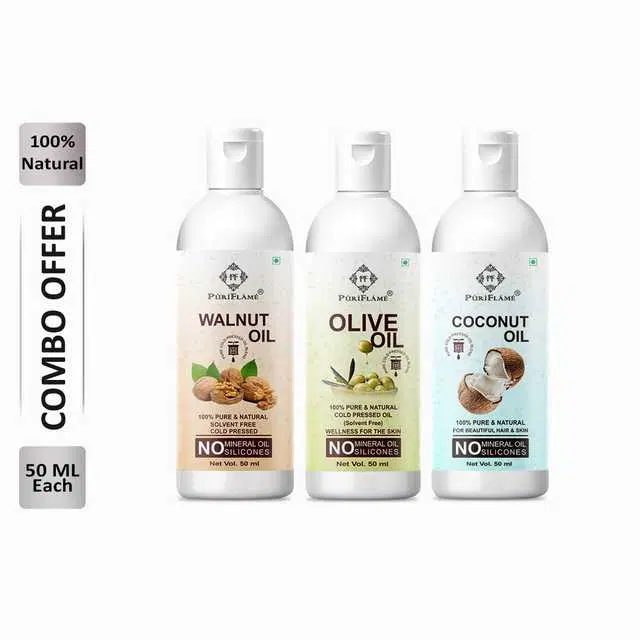Puriflame Pure Walnut Oil, 50 ml, Olive Oil, 50 ml & Coconut Oil, 50 ml Combo for Rapid Hair Growth, Pack Of 3, B-14023 @ ₹286 - Buy Online at CityMall