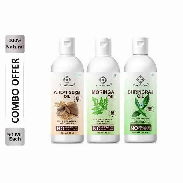 Puriflame Pure Wheat Germ Oil, 50 ml, Moringa Oil, 50 ml & Bhringraj Oil, 50 ml Combo for Rapid Hair Growth, Pack of 3, B-14292 @ ₹314 - Buy Online at CityMall